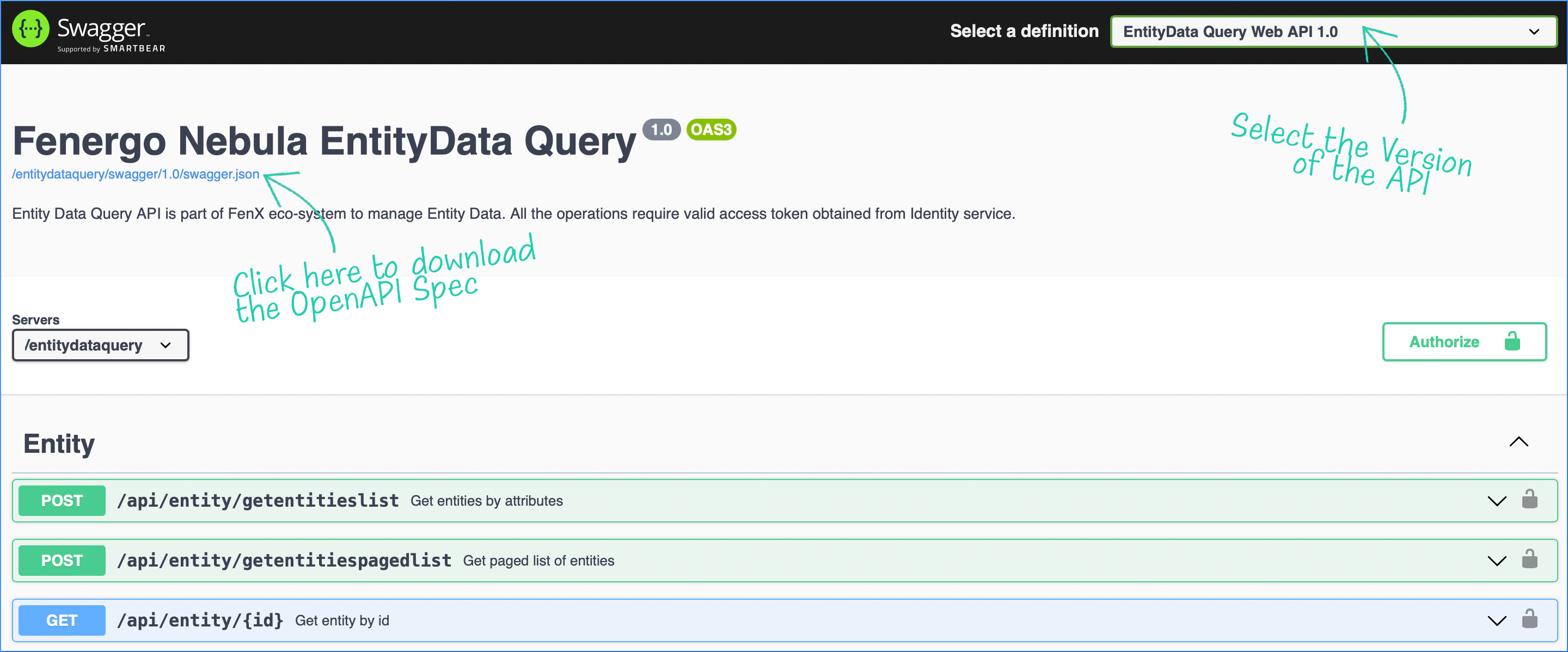 The API Catalogue contains a listing of all the Swagger Docs and APIs available on the Fenergo SaaS Platform. These links will take you to the Swagger User Interface of the selected API where you can download the Open API Specification and also browse / interact with the APIs. Screen will be presented as below.