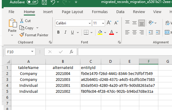 The response CSV file for the 4 entities migrated in this exercise are as follows: