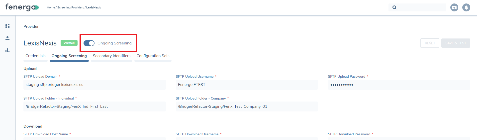 The screening provider configuration inside The Fenergo SaaS Platform has an "Ongoing Screening" setting which can be enabled inside the configuration screen. This is applied to all Screening Activities performed via the UI / Journeys.